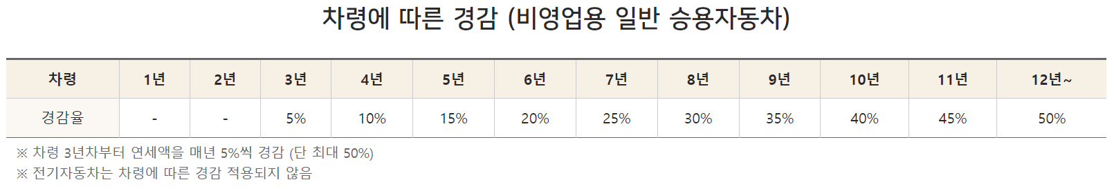 괄호안은 교육세 (30%)가 포함된 금액입니다. 전기차를 제외한 차령에 따라 감액 적용이 됩니다.