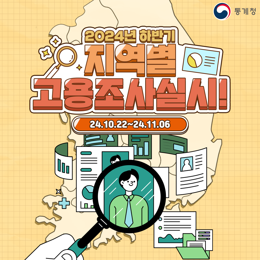 통계청에서 10월 22일 화요일부터 11월 6일 수요일 까지 전국의 23만여가구를 대상으로 2024년 하반기 지역별 고용조사를 실시합니다. 조사기간 중 통계청 조사원이 해당 가구 방문 시에 조사에 적극 협조하여 주시기 바랍니다. 오늘은 2024년 하반기 지역별 고용조사에 대해 간단하게 살펴보겠습니다.